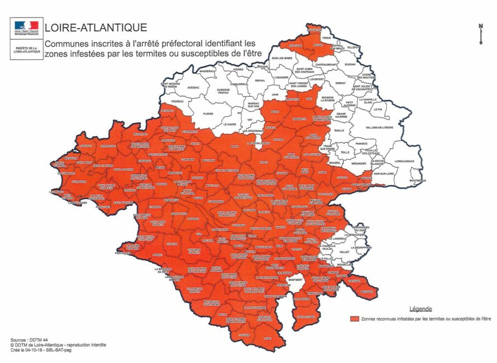 Les termites sont présents dans une grande partie de la France, dont la quasi-totalité du département de Loire-Atlantique, classé en zone contaminée ou susceptible de l’être.
